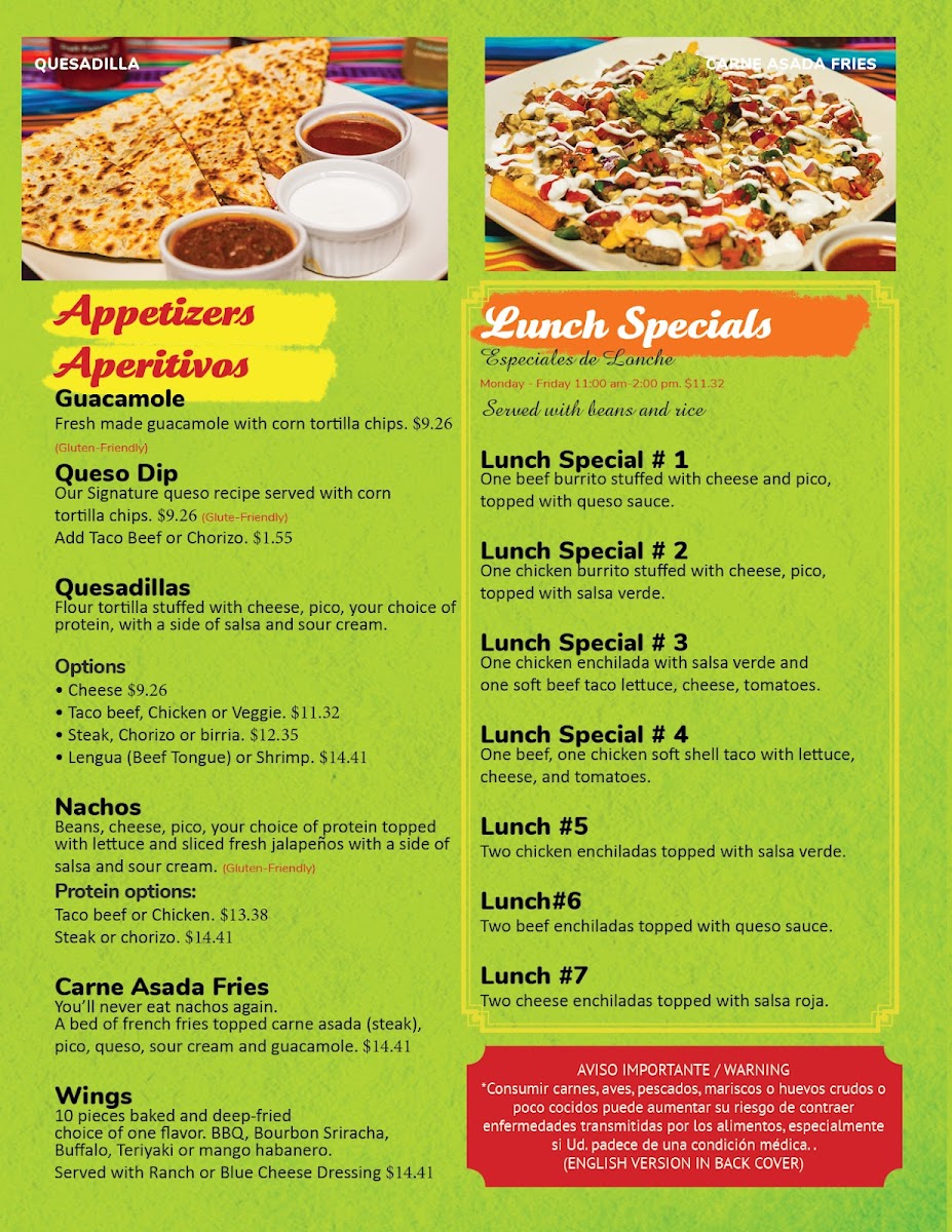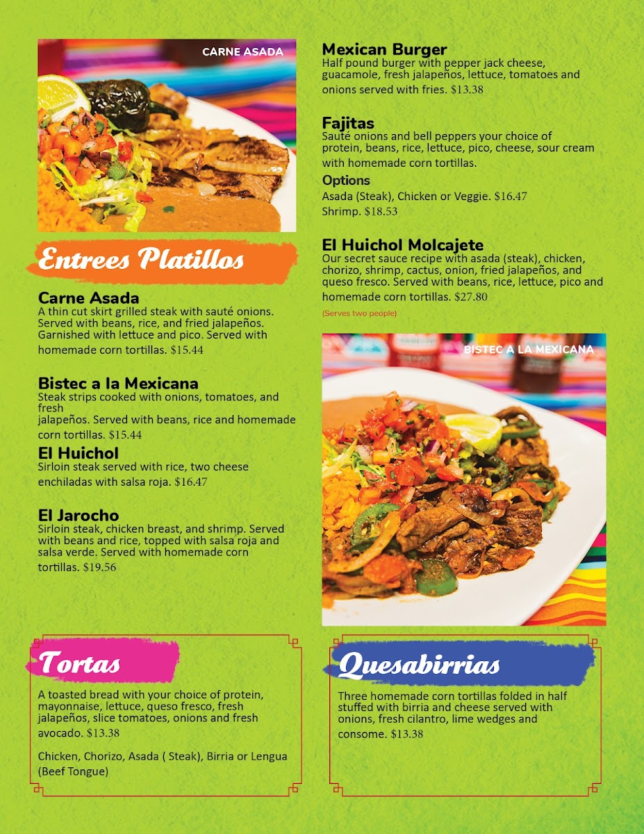 El Huichol Mexican Restaurant Menu